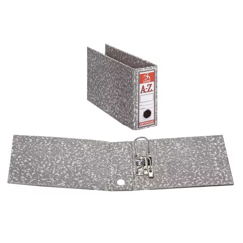 Archivadores jaspeados en color gris, en cartón forrado con papel impreso, cantoneras metálicas y palanca de máxima calidad. Formato apaisado para una mejor organizacion de recibos. Marca: DOHE Ref. Marca: 09104
