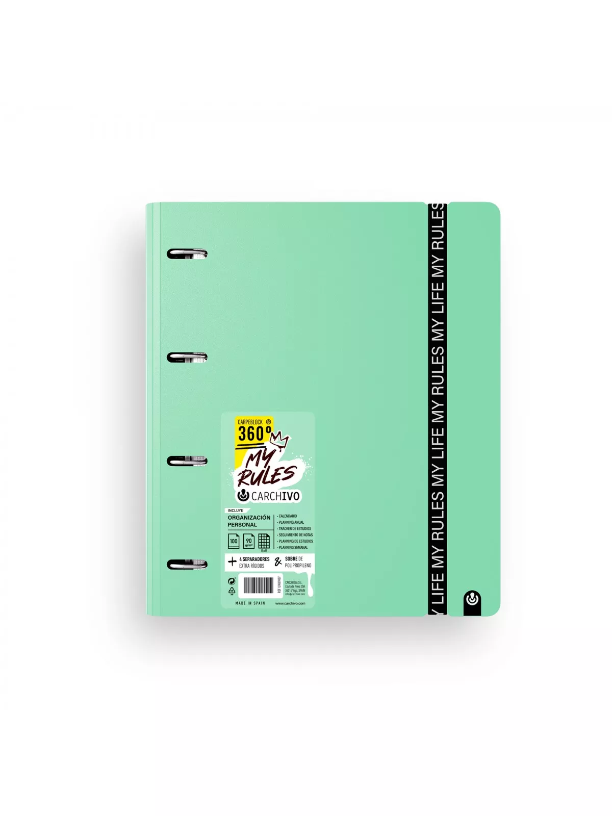 CARPEBLOCK PP FOAM 4ANILLAS C/RECAMBIO 100H 5X5 VERDE JADE CARCHIVO 1247747