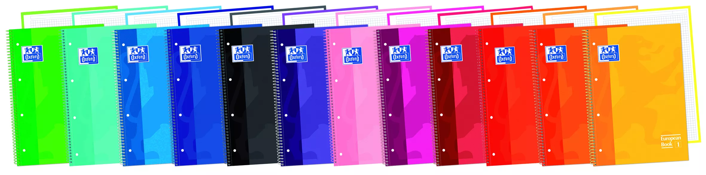 Cuadernos formato A4+, de 80 hojas microperforadas y con cuatro taladros, para arrancarlas con facilidad y archivarlas. Cuadrícula de 5 mm. Hojas con recuadro del color de la tapa para facilitar la clasificación por asignaturas. Espiral del mismo colMarca:OXFORD Ref. Marca:400028276