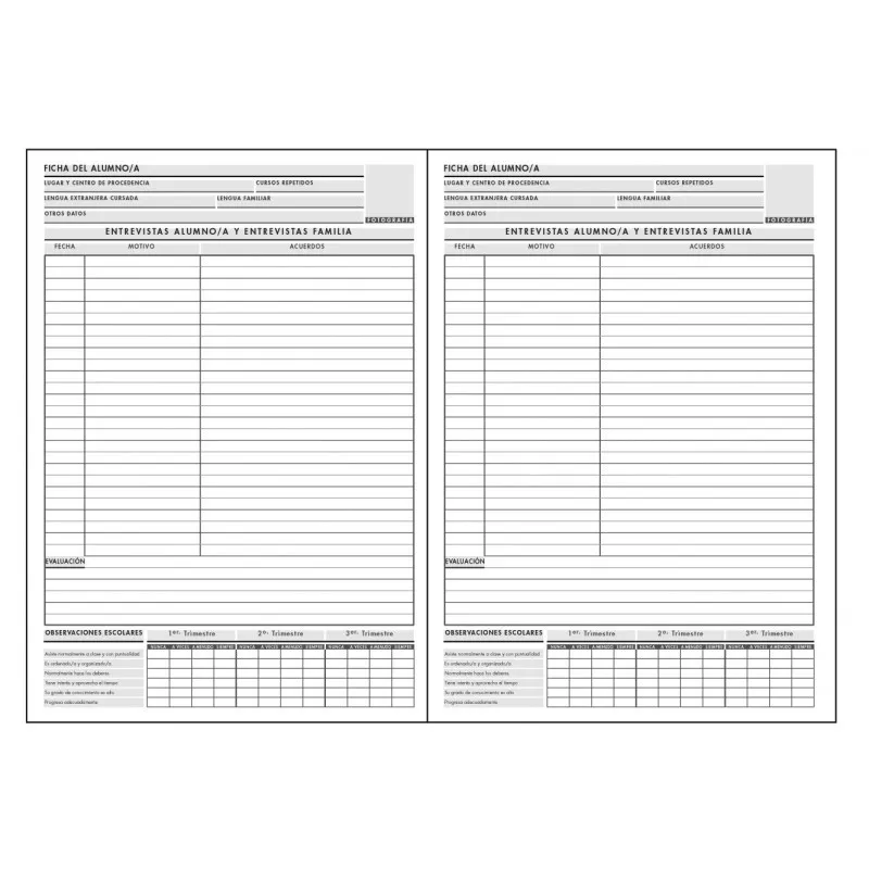 Datos personales y familiares. Falta de asistencia por meses. Ficha del alumno/a. Incluye funda portadocumentos y calendario. Tamaño A4. Marca:ADDITIO Ref. Marca:P132