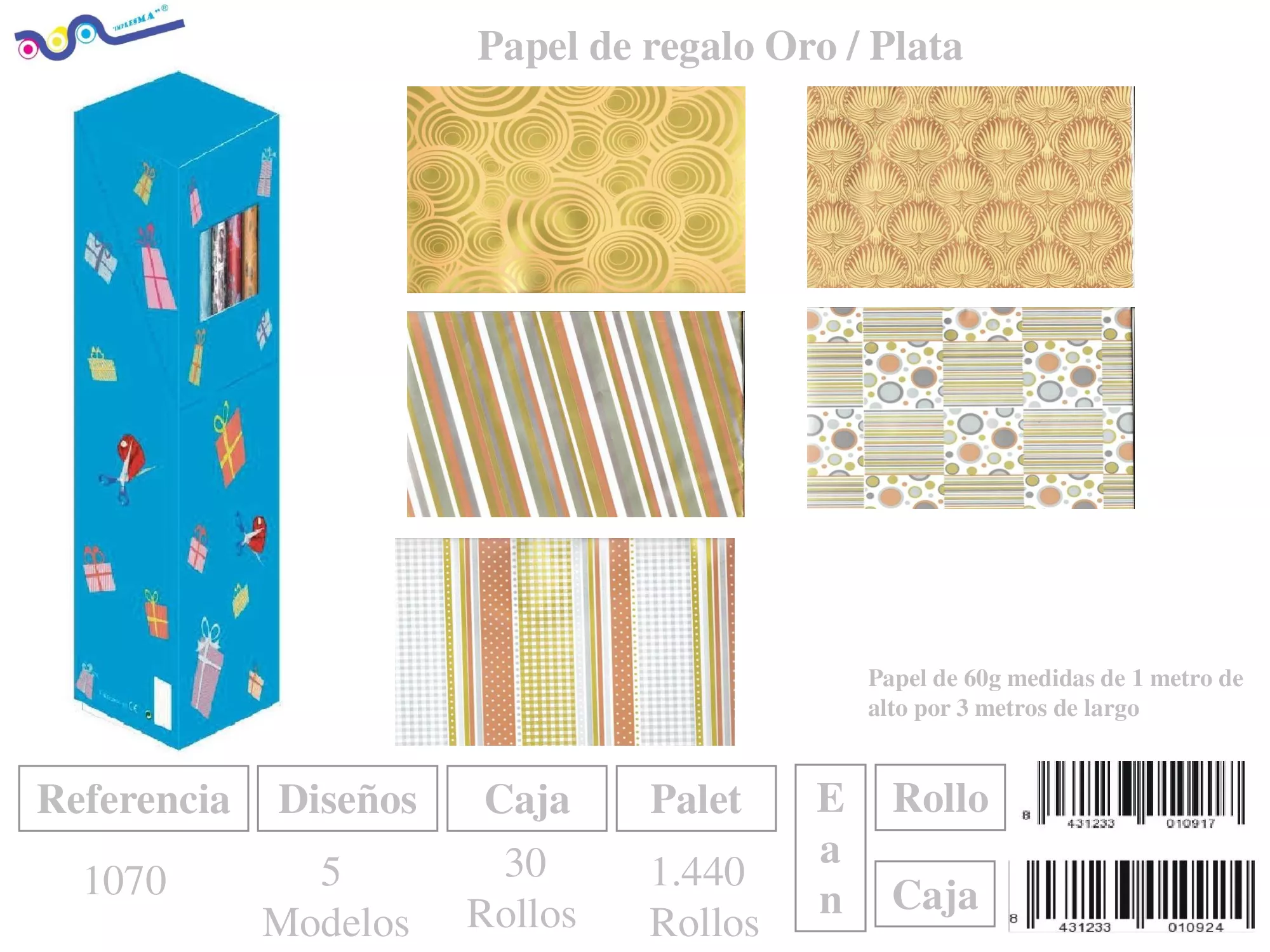 PAPEL REGALO ROLLO 1X3MTS TODO TIEMPO IMPRESMA 1007-C