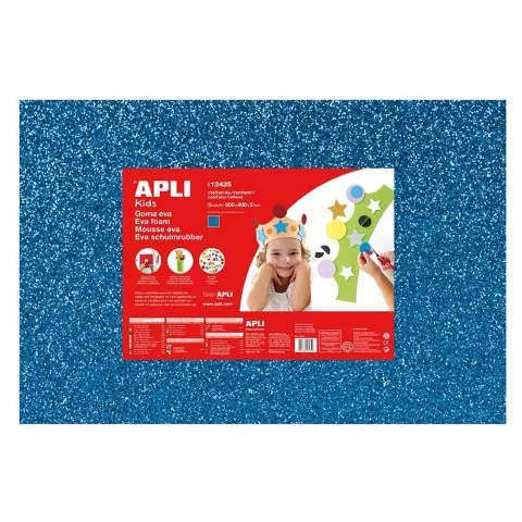 Goma eva con acabado en purpurina, pliegos de 40x60cm. Ideal para todo tipo de manualidades y tabajos infantiles. Marca: APLI Ref. Marca: 13435