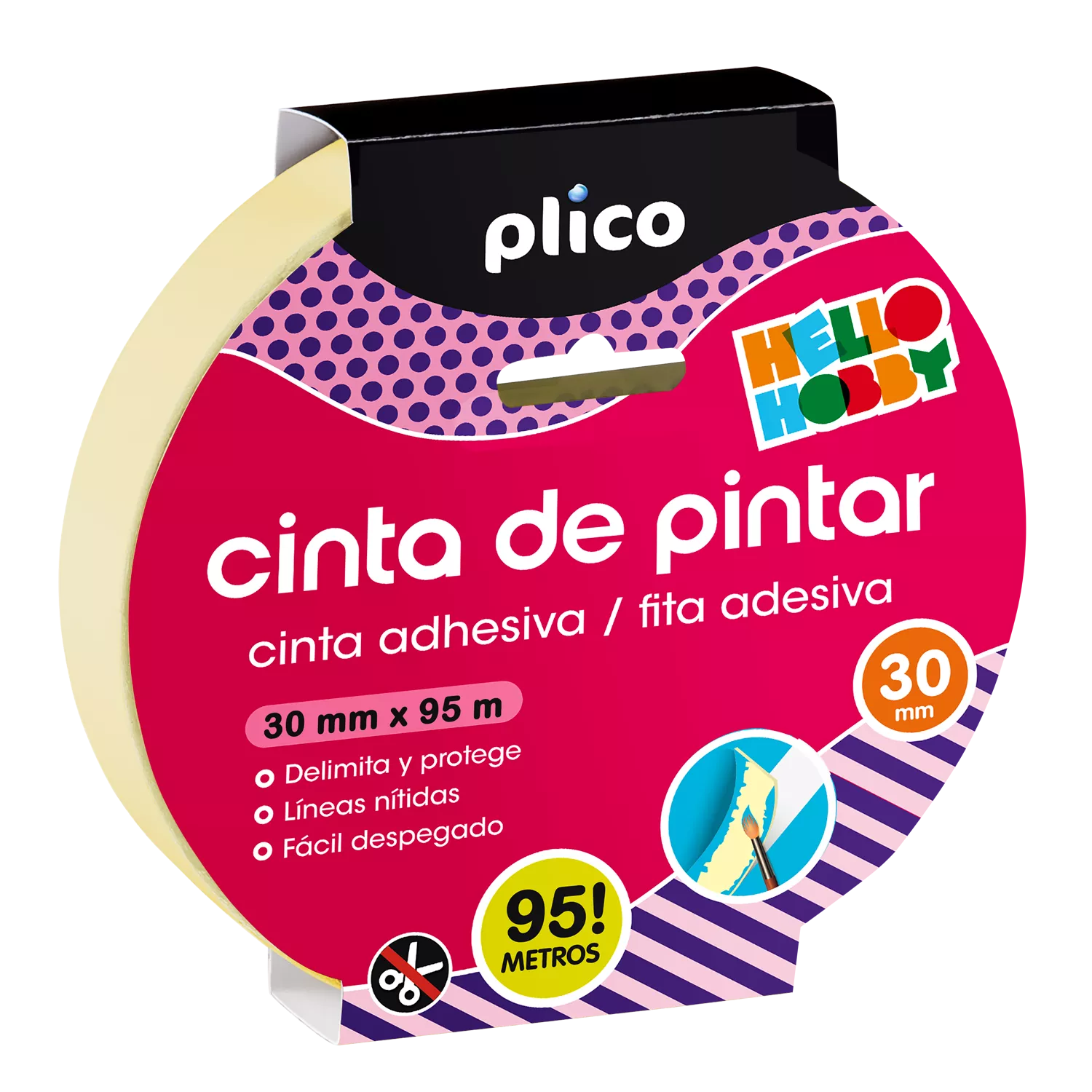 La Cinta de Pintar permite realizar todo tipo de manualidades y pequeños trabajos de bricolaje con la máxima limpieza y definición. Puede pegarse sobre cualquier tipo de soporte (cartulina, madera, plástico...), sin que éste sufra ningún daño en el momento de ser despegada. Se usa también para unir dos piezas que vayan a ser pintadas, quedando la cinta enmascarada. Marca: PLICO Ref. Marca: 13329