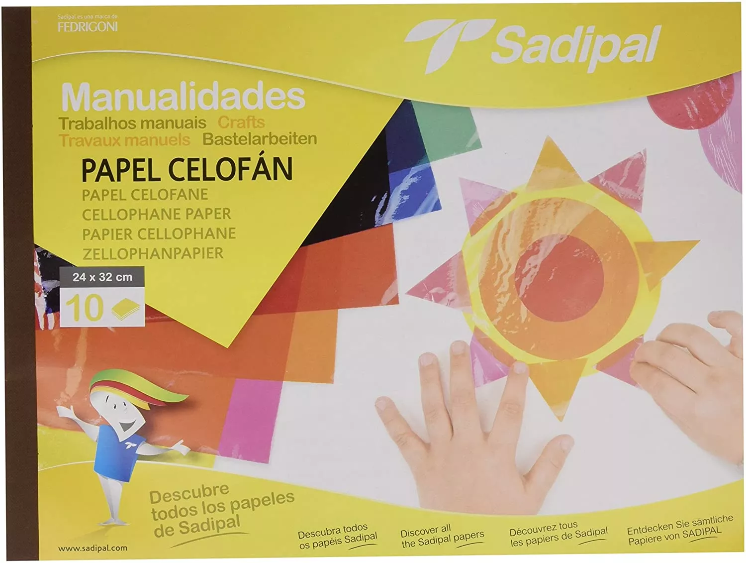 Cuaderno de manualidades de papel celofán. 10 hojas en colores surtidos. medidas: 32 x 24 cm. Marca:SADIPAL Ref. Marca:05978