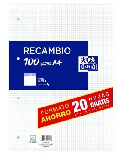 RECAMBIO A4 4 ANILLAS 4X4 100H MARGEN 90GRS OXFORD 400195058