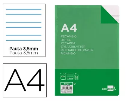 RECAMBIO A4 100H 60gR PAUTA 3,5mm 4 TALADROS LIDERPAPEL 27780 RF07