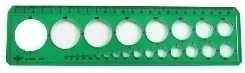 Plantilla de círculos fabricados en poliestireno inyectado verde con impresión por serigrafía para dibujo. Marca: VARIOS Ref. Marca: 156000