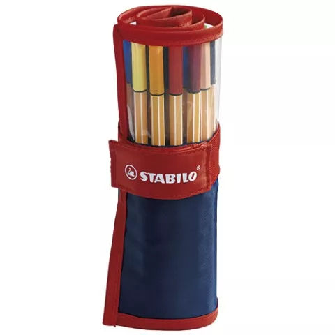 uche de tela enrollable con 25 colores del rotulador mas popular en europa. Son rotuladores de punta de fibra con refuerzo metálico. Apto para su uso con reglas y plantillas. No se seca si se deja sin tapón durante largos periodos. Tapón ventilado. Llena tus apuntes y trabajos de color, encontrarás y llevarás tus rotuladores favoritos de una manera practica y organizada. Encuentra el color que necesitas en un solo vistazo Ancho de trazo: 0,4 mm. Marca: STABILO Ref. Marca: 8825-021