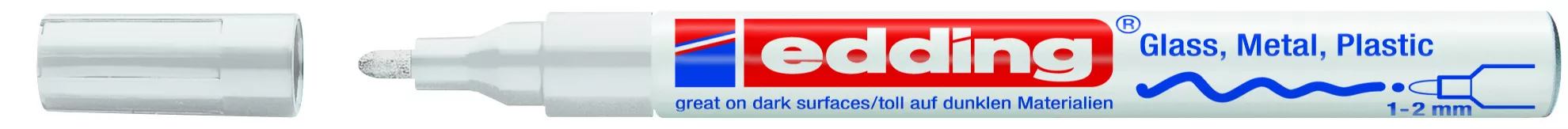 Aptos para casi todo tipo de superficies. Tinta pigmentada de secado rápido con efecto lacado cubriente, indicada para superficies oscuras y transparentes. Tinta resistente a la luz, al roce y al calor. Marca:EDDING Ref. Marca:751-49