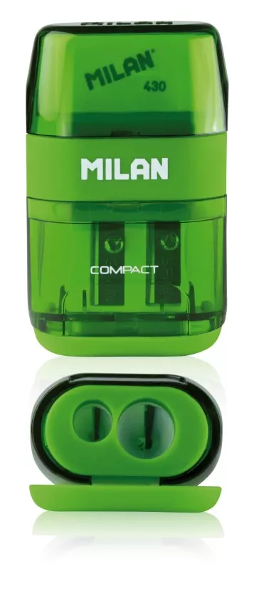 Combinación de goma y sacapuntas COMPACT. El sacapuntas tiene una cuchilla de acero al carbono afilada y resistente, ideal para lápices de grafito y lápices de color. La goma es de miga de pan, suave, de caucho sintético. Artículo con cuchilla de seguridad, este sistema evita que se pueda separar la cuchilla del cuerpo del sacapuntas. 4 colores: azul, gris, rosa y verde Marca: MILAN Ref. Marca: 4703116