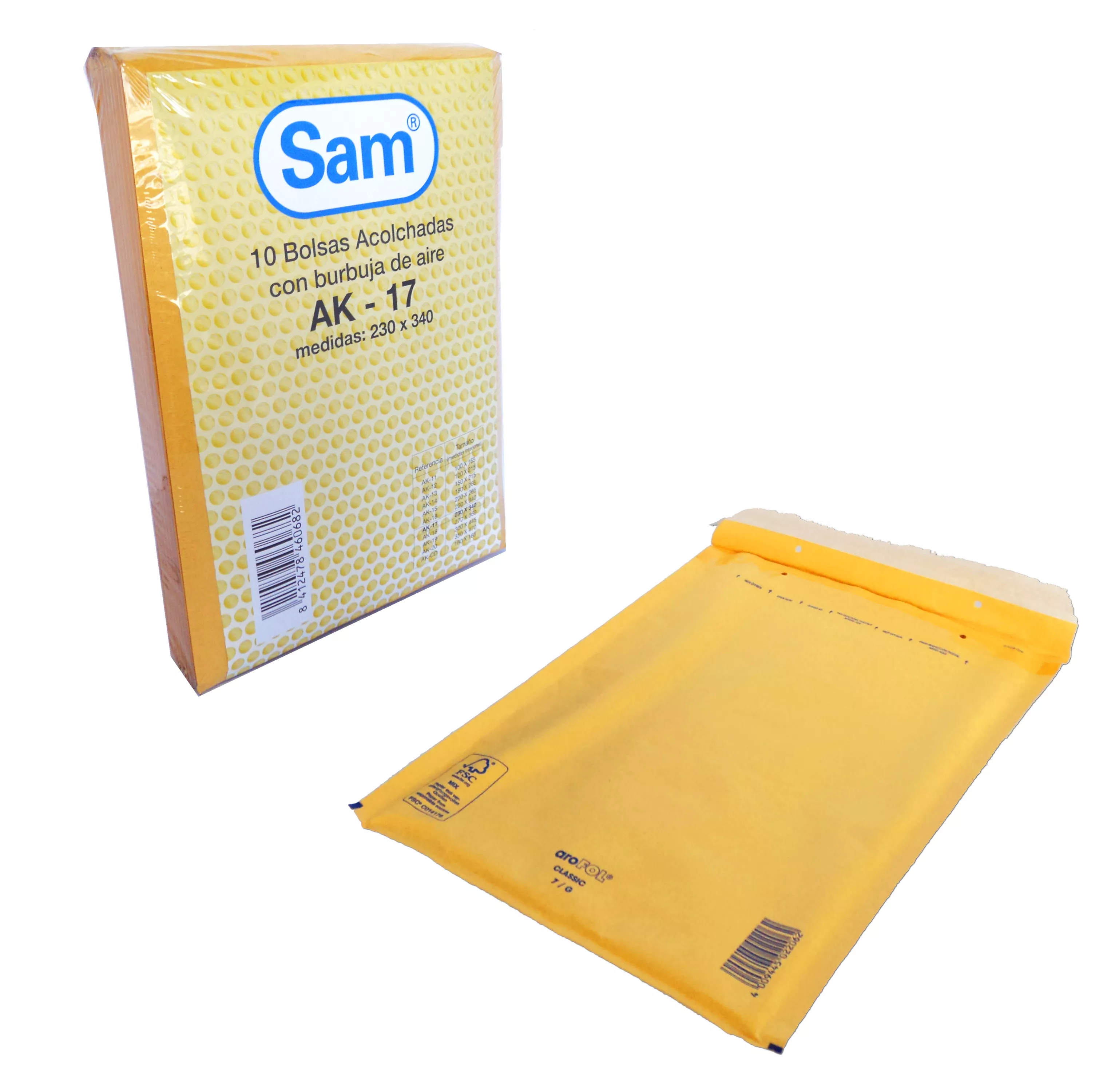 BOLSA BURBUJA KRAFT Nº17 230MMX340MM AK-17 10UDS SAM 460682
