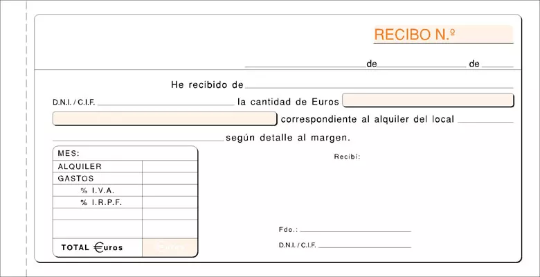 TALONARIO RECIBO ALQUILER IVA 207X109MM 50H ORIGINAL+COPIA LOAN T-52
