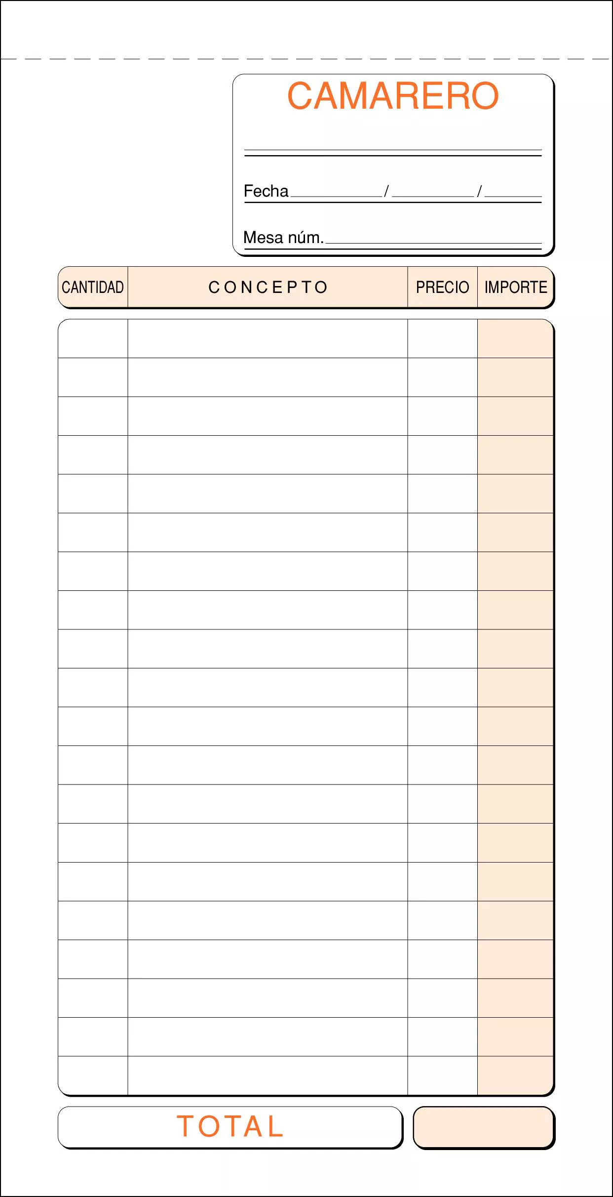 TALONARIO CAMARERO 210MMX110MM ORIGINAL+COPIA LOAN T-100