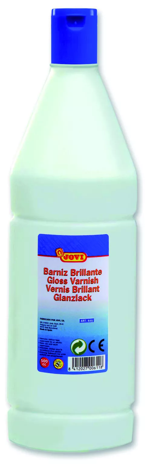 Barniz brillante acrílico transparente en el secado. Se puede utilizar como producto tapa poros. Marca:JOVI Ref. Marca:627